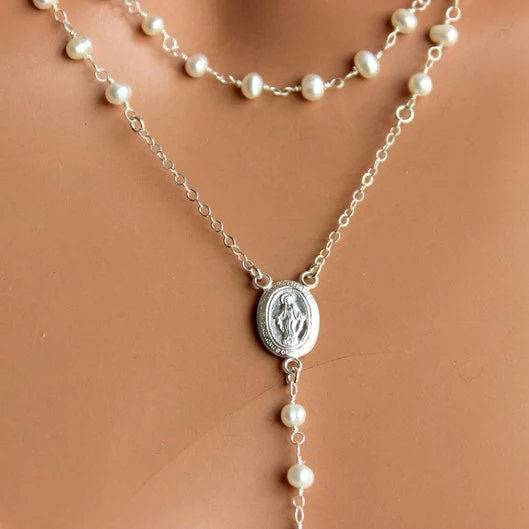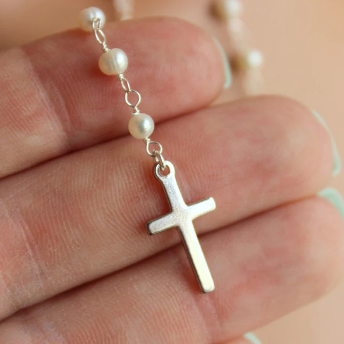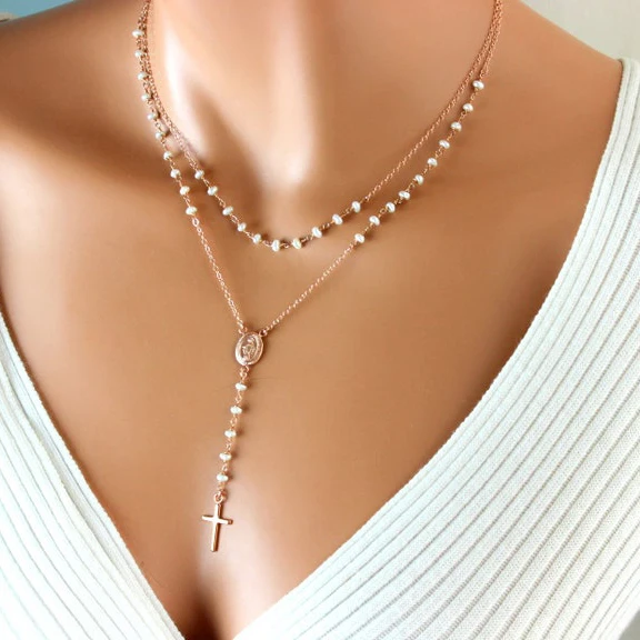 Sterling Silver Necklace Rosary Cross 18k Rose Gold Silver Sublimation Rosary Necklace